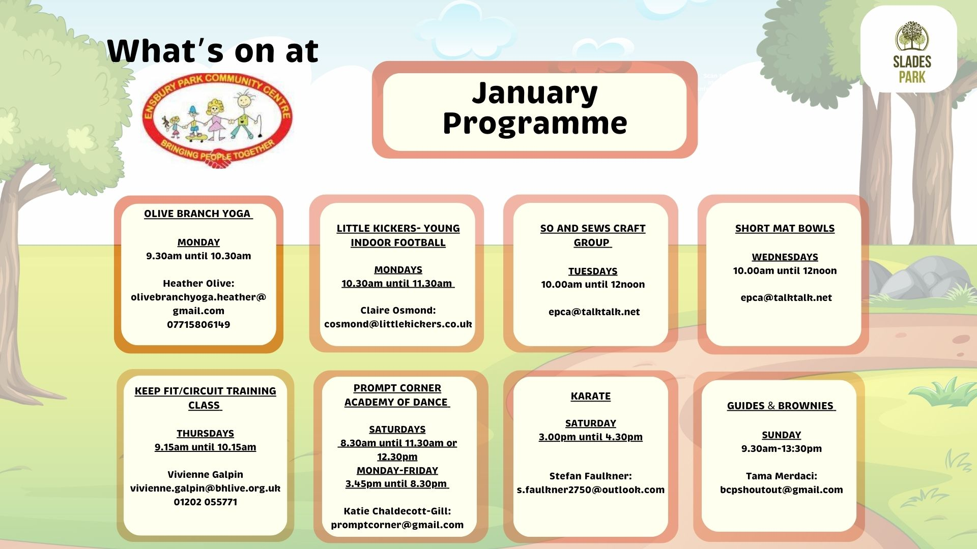 Slades Park Community Centre Events in January