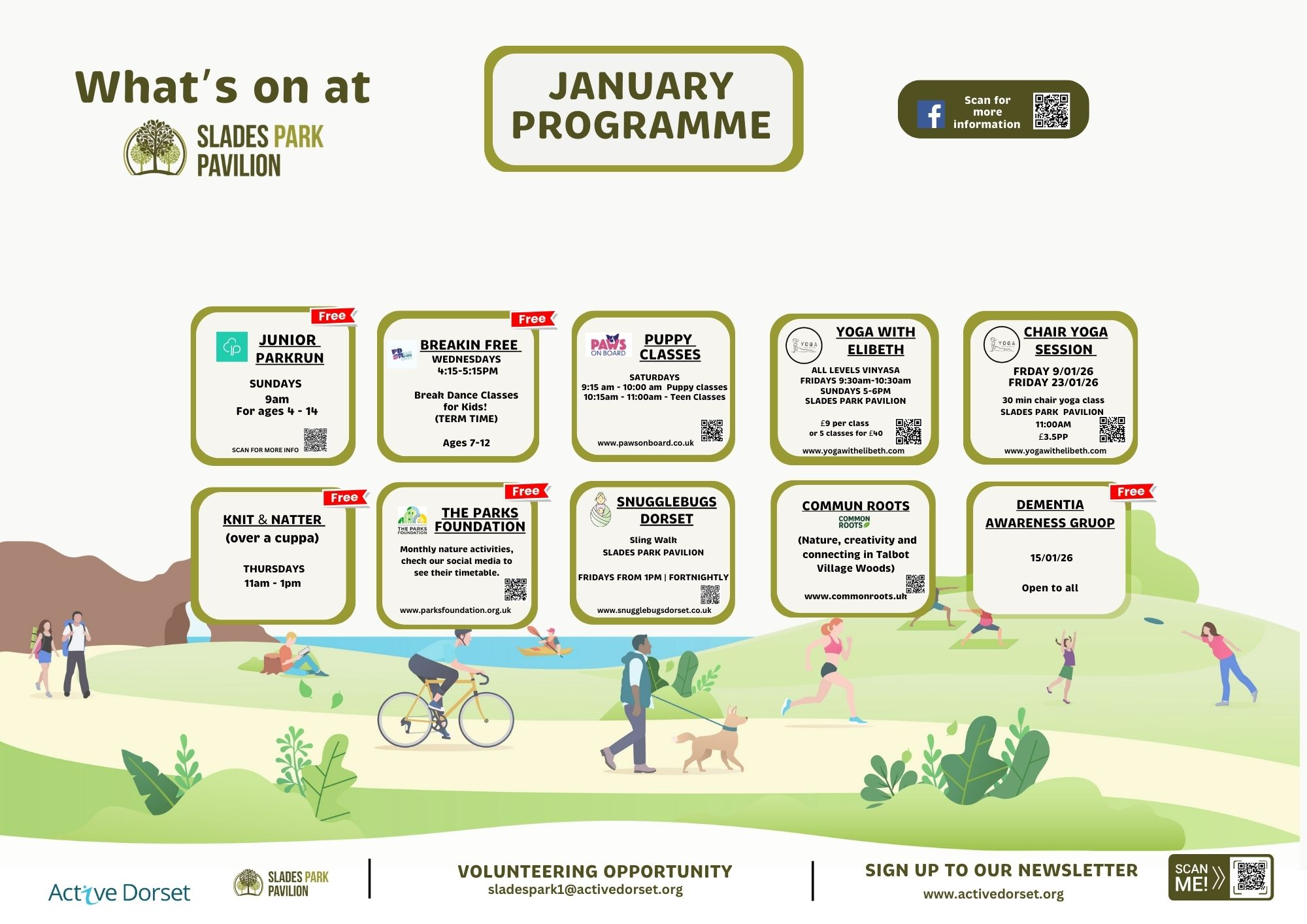 Slades Farm / Park always have a lot of events on, both at the Pavilion and the adjacent Community Centre. The Parks Foundation, a charity who help support the wider set of parks in the BCP area also advertise events specific to Slades Farm (the link to the Parks Foundation site can always be found on our directory page, but there is a link lower down this page). Please take a look at each of the links below to see if there are any events that you may be interested in.