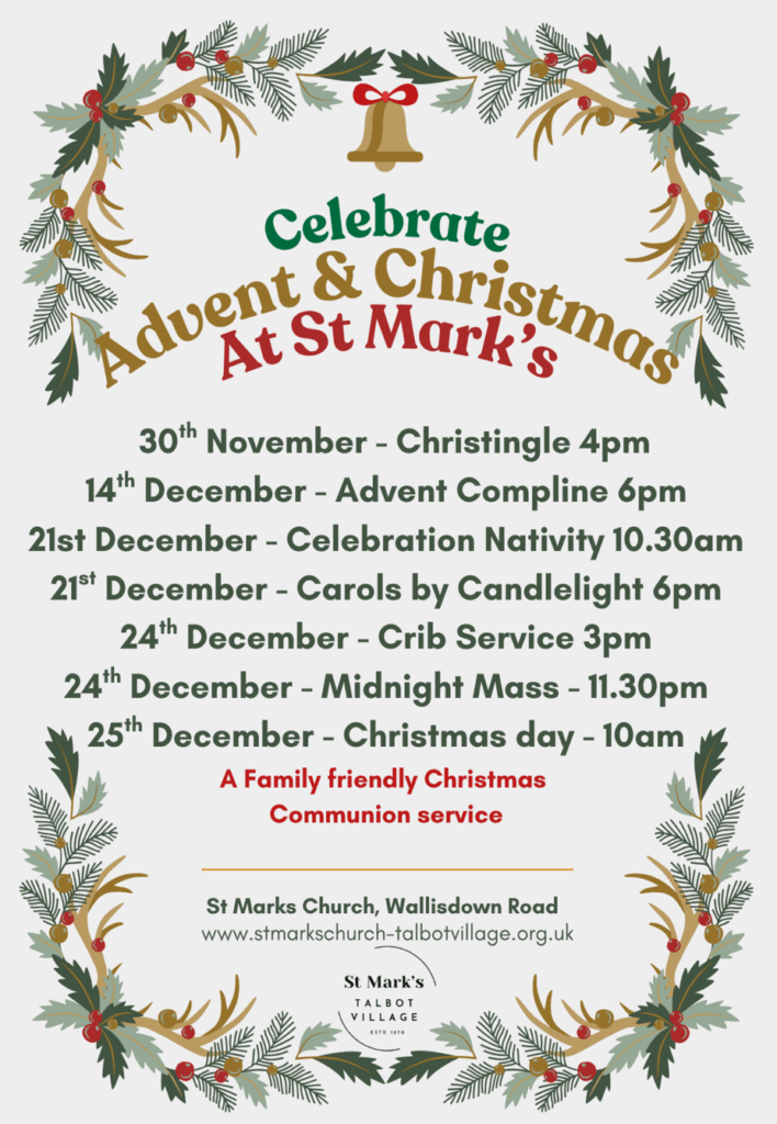 St. Mark’s Church will be holding a number of special services at the Church throughout Advent and Christmas.