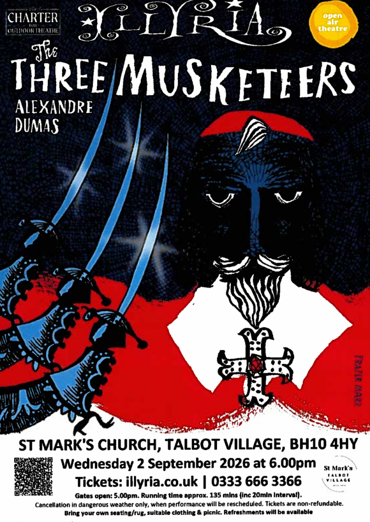 St Marks Church are hosting an open air theatre evening in the grounds of the Church. It will be a version of The Three Musketeers by Alexander Dumas.