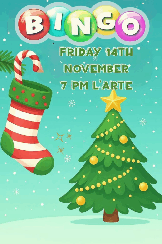 Join us on Friday 14th November 2025 at 7pm at L’arte for an evening of Village Bingo with a Festive Bonus Round to get everyone in the Christmas spirit!